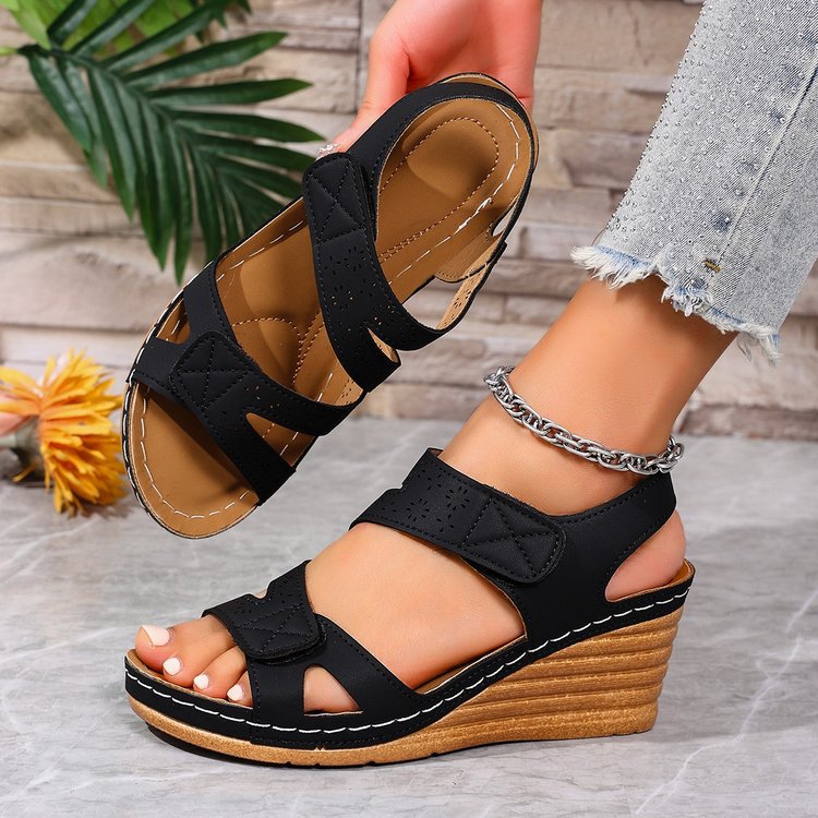 Signe™ – Ortopædiske kilehælsandaler med velcrolukning